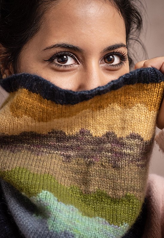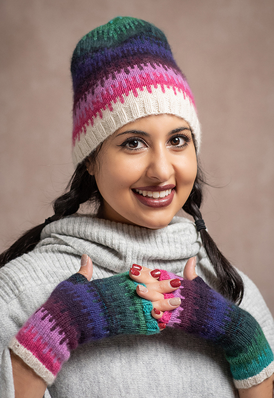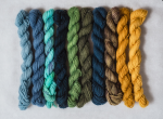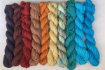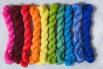 The Cashmere Coloring Box contains 10 mini skeins of Jade Sapphire 4-ply Mongolian Cashmere and a spiral bound full color booklet with 7 patterns.