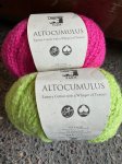 The cotton offers a cool, gentle hand, while the polyamide adds subtle elasticity and strength, allowing stitches to bloom into a cushioned, cloud-like texture that holds its shape beautifully. Unlike traditional cottons that can feel flat or heavy, Altocumulus creates fabric with body and resilience, even at a bold bulky gauge.