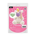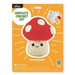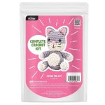 The kit includes yarn, plastic crochet hook, plastic needle, plastic safety eyes, stuffing, stitch marker, complete written instructions, and a QR code with a full Stitch-a-Long Video.