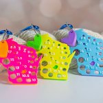 Each needle gauge comes with a matching magnetic needle minder and hangs on a carabiner. Needle gauges feature US needle sizes.